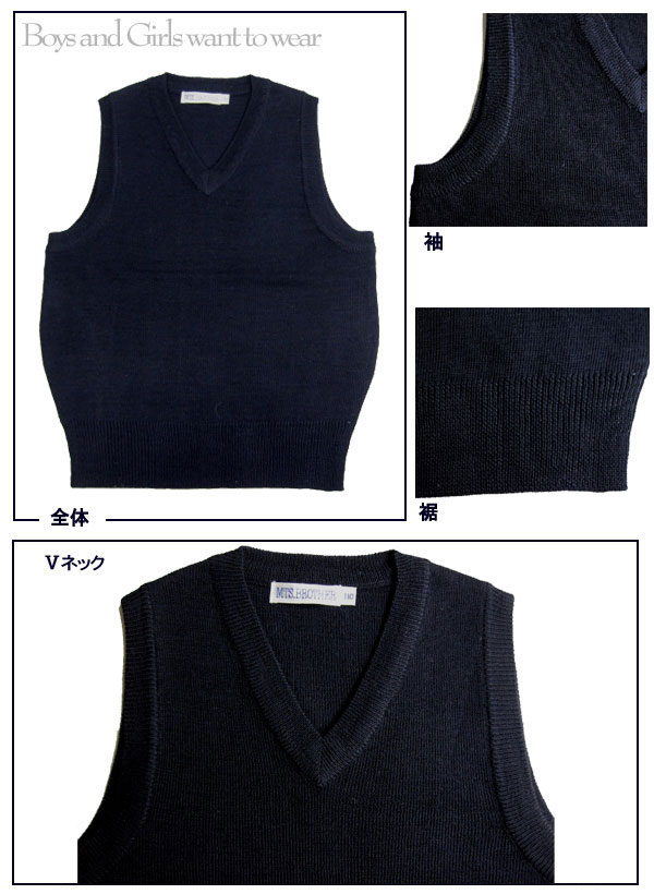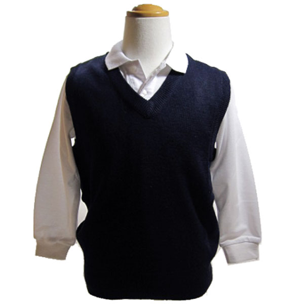 【ネコポス送料無料】スクールベスト[ウール30%タイプ] 濃紺無地 ウール混スクールセーターVネック 子供100〜170サイズ