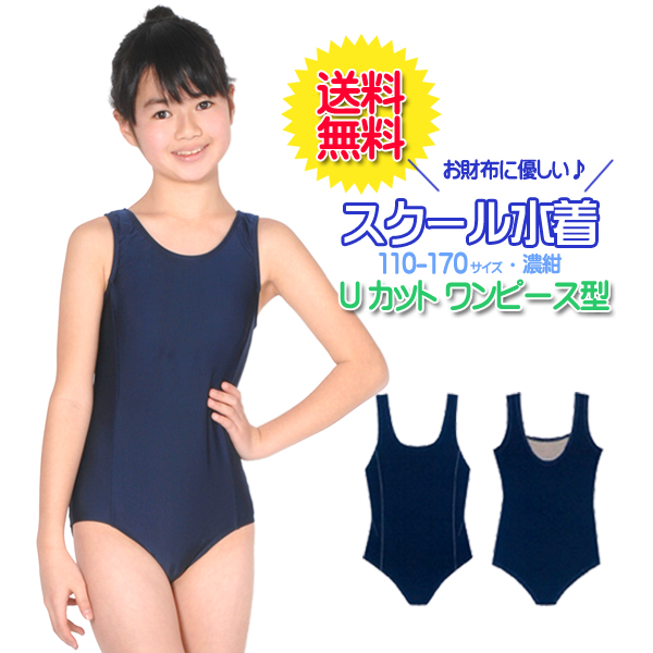 【ネコポス送料無料】スクール水着 女の子用Uカット [UPF50+紫外線対策加工] 女子(女児)キッズ110〜170サイズ