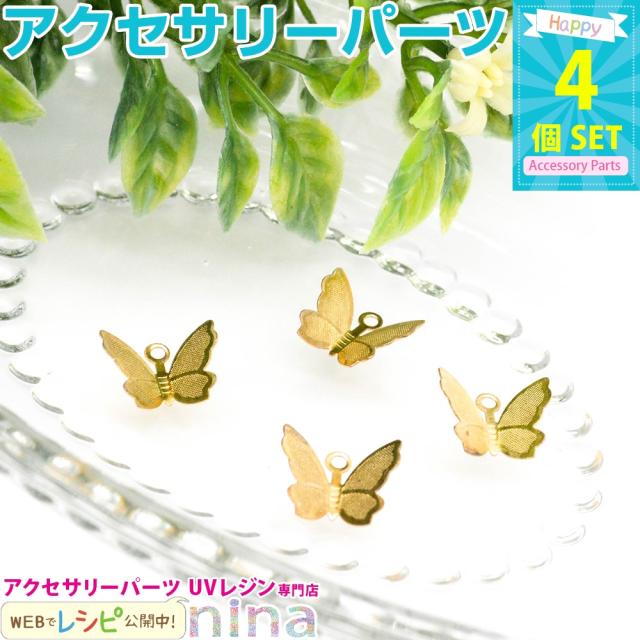 小さな蝶チャーム ゴールド カン付き 4個セット | 蝶チャームでおしゃれアレンジ! / チャーム 蝶 ゴールド 金 バタフライ 手作り レジン UVレジン アレンジ カン付き レジン液 可愛い おしゃれ ハンドメイド 手芸