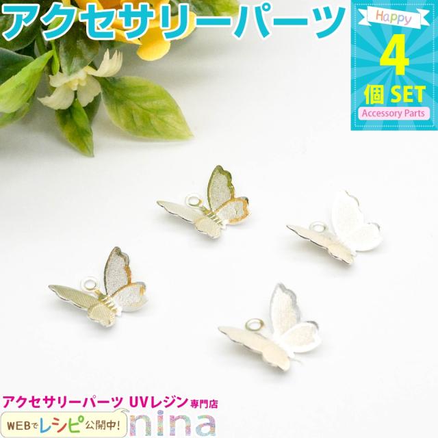 小さな蝶チャーム シルバー カン付き 4個セット チャーム 銀 ハンドメイド チャーム バタフライ 蝶 レジン液 シルバー UVレジン カン付き おしゃれ レジン 手作り アレンジ