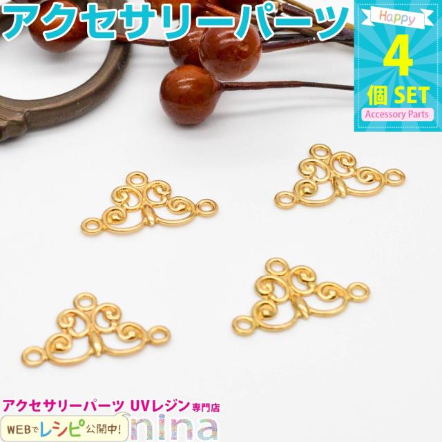 チャーム 花 三角 ゴールド 4個セット チャーム 手作り ゴールド チャーム レジン フラワー ハンドメイド 花 メタルパーツ UVレジン 手芸 アクセサリー 金 三角