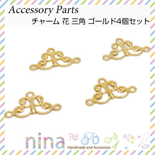 ■商品名:チャーム 花 三角 ゴールド 4個セット