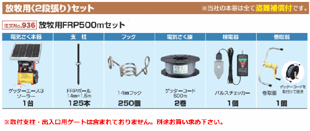 【法人配送限定】 末松電子 電気柵セット #936 放牧用FRP500mセット 放牧用2段張りセット