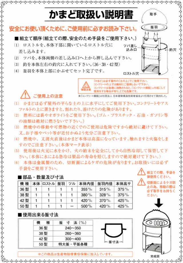 【特長】本品はかまど・羽釜・木蓋のセット商品です