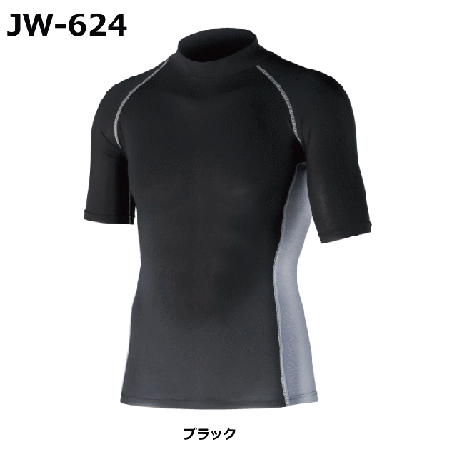 おたふく手袋 インナー JW-624 BT冷感 消臭パワーストレッチ 半袖ハイネックシャツ ブラック 【メール便送料無料】