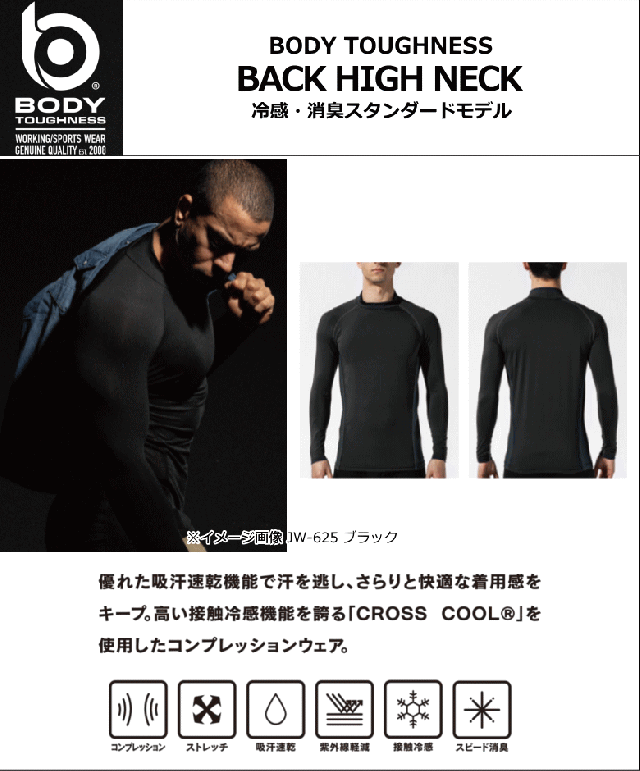 おたふく手袋 インナー JW-625 BT冷感 消臭パワーストレッチ 長袖バックハイネックシャツ 【メール便送料無料】