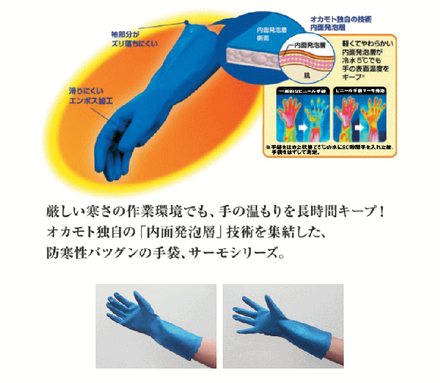 オカモト OG-005 サーモ発泡手袋 (1双) ビニール手袋 抗菌加工 日本製 サーモハッポウ 【メール便送料無料】