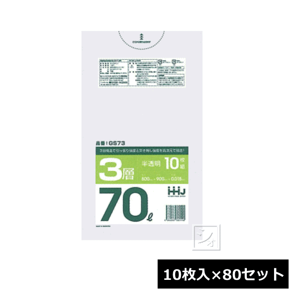 【法人配送限定】 ハウスホールドジャパン 3層ポリ袋 70L (10枚入×80冊) 半透明 GS-73 (800×900mm 厚み:0.018)