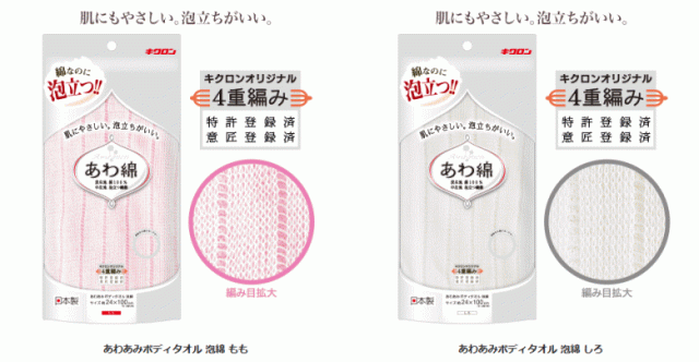 キクロン あわあみ ボディタオル 泡綿 日本製 【メール便送料無料】