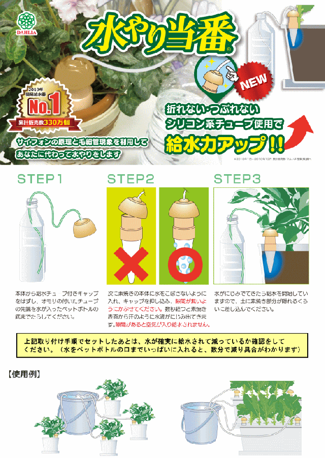 ・サイフォンの原理と毛細管現象を利用してあなたに代わって水やりをします