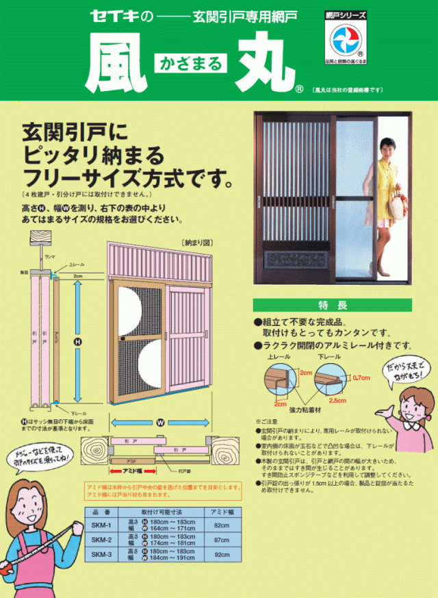 【法人配送限定】 セイキ販売 SKM-1 風丸 玄関引戸専用網戸(取付可能寸法:幅164cm〜171cm×高さ180〜183cm)