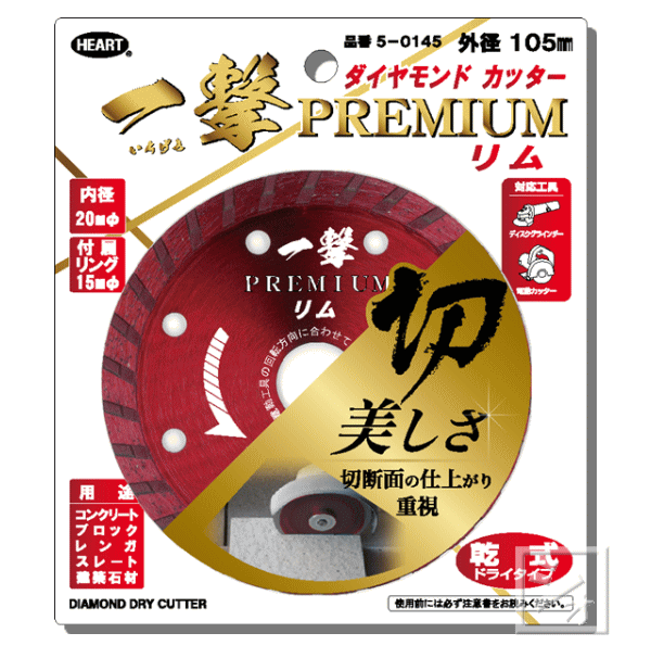 ハートフルジャパン ダイヤモンドカッター 一撃 プレミアム リム 乾式 5-0145 外径105mm×内径20mm 1枚入 【メール便送料無料】