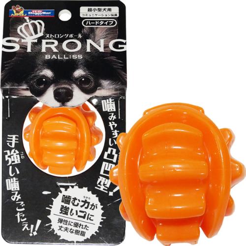 超小型犬用。噛む力が強いコに。弾性に優れた丈夫な樹脂(TPR)。ビビッドなカラーリング。噛みやすい凸凹形状。
