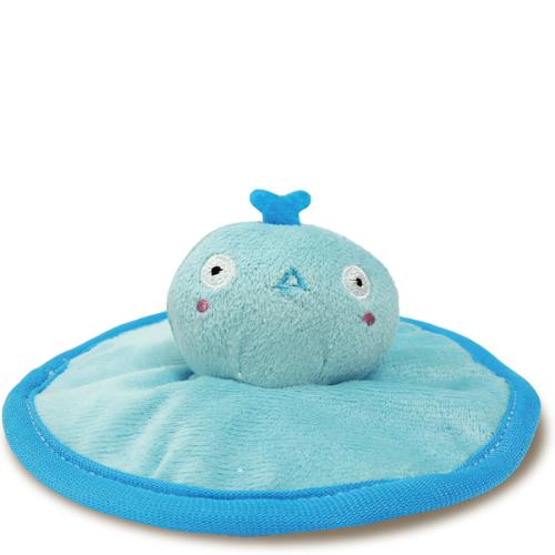 笛とパリパリフィルムの2つの音で噛んでも振っても楽しい!よく飛ぶ形状でふわふわやさしい布のぬいぐるみ!