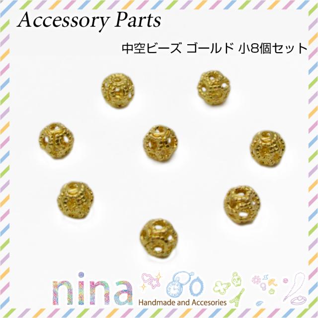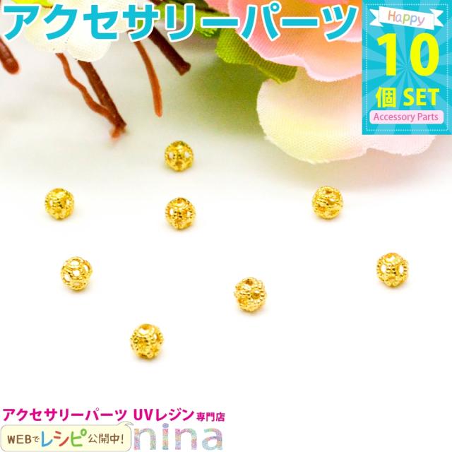 4mm中空ビーズ ゴールド 小 10個セット | パーツを使って可愛く / ビーズ 丸 ゴールド 透かし レジン液 ペンダント ハンドメイド 部品 デコパーツ 金 ネックレス 円 おしゃれ パーツ 手作り
