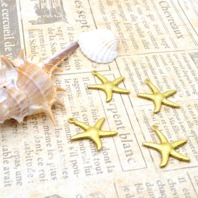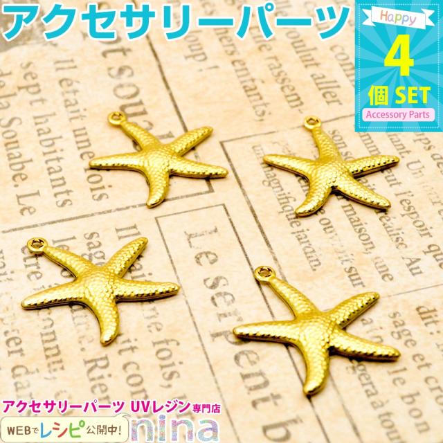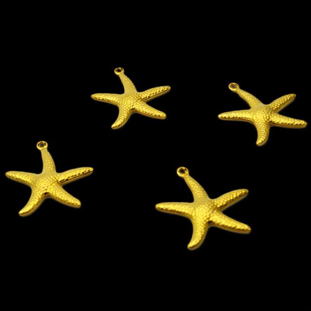ヒトデチャーム ゴールド カン付き 4個セット | ヒトデチャームでマリン風アクセサリー♪ / チャーム ヒトデ スターフィッシュ ゴールド ネックレス デコパーツ アクセサリーパーツ 部品 おしゃれ 金 ペンダント アクセサリー 可愛い カン付き パーツ