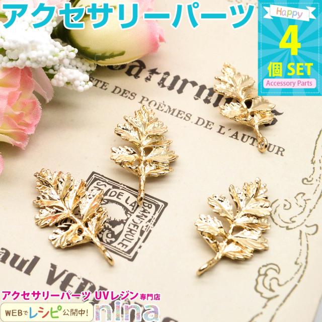 小枝チャーム ゴールド カン付き 4個セット 小枝 ゴールド パーツ 小枝 アクセサリー チャーム 金 メタルチャーム 手作り コネクタパーツ ネックレス UVレジン 可愛い メタルパーツ