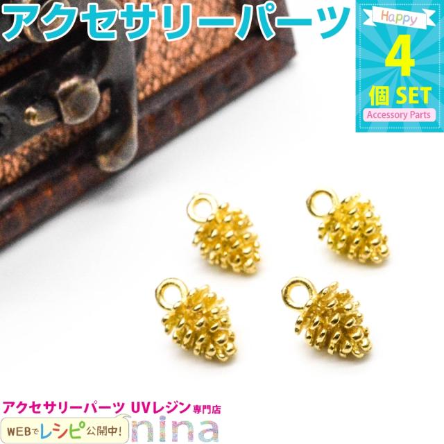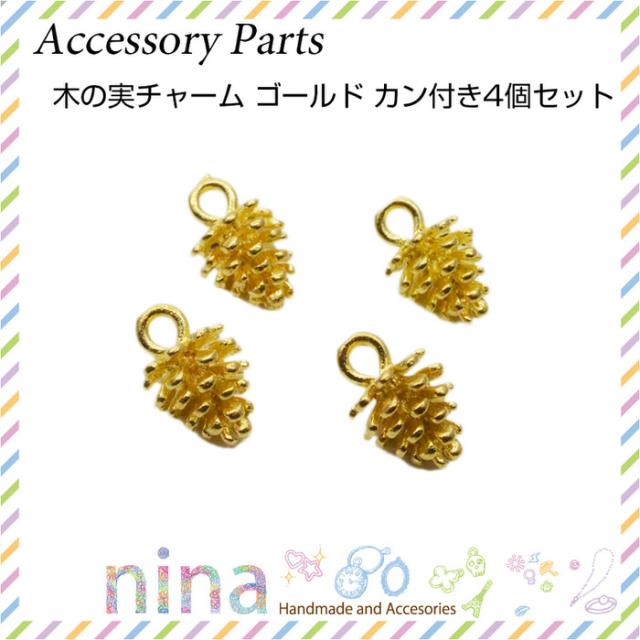 木の実チャーム ゴールド カン付き 4個セット チャーム ゴールド 金具 チャーム 手芸 木の実 手作り 金 パーツ ハンドメイド UVレジン ネックレス メタルパーツ レジン