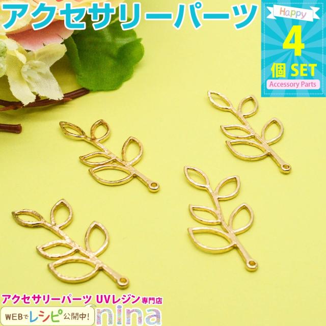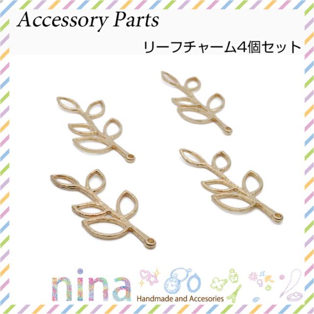 リーフチャーム ゴールド カン付き 4個セット チャーム ゴールド メタルパーツ チャーム ペンダント リーフ 金 葉 可愛い カン付き デコパーツ 手作り アクセサリー ネックレス