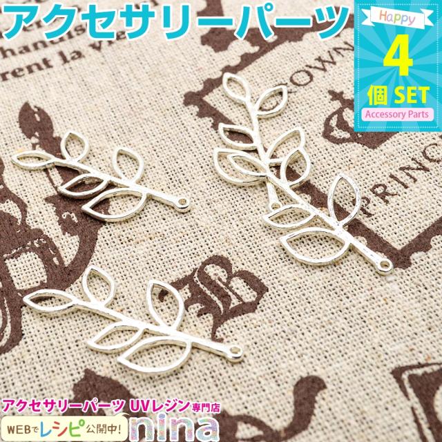 リーフチャーム シルバー カン付き 4個セット | リーフチャームで可愛くおしゃれに / チャーム 葉 リーフ 金 ペンダント 可愛い UVレジン 手作り アクセサリー カン付き ゴールド ネックレス メタルパーツ パーツ ハンドメイド