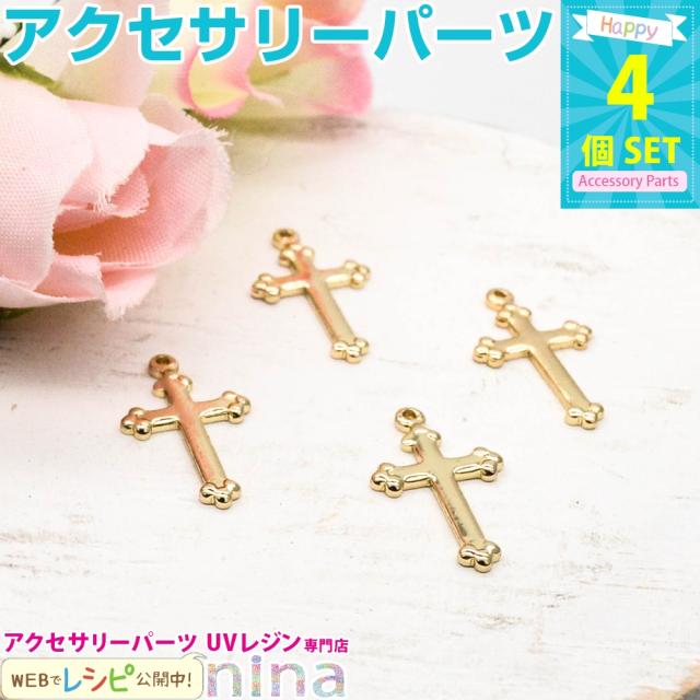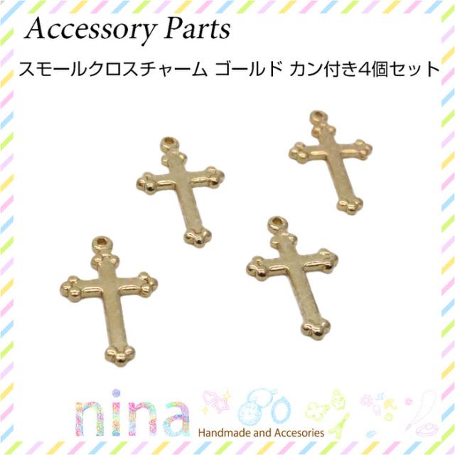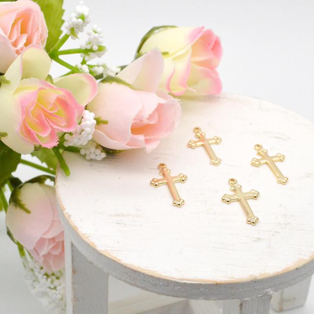 スモールクロスチャーム ゴールド カン付き 4個セット 十字架 ゴールド 金属チャーム 十字架 おしゃれ クロスチャーム カン付き 金 アンティーク デコパーツ 部品 手作り アクセサリー パーツ