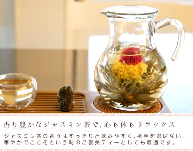 | 商品説明 | 1.それは芸術的な花咲くお茶。コロンとした茶葉にお湯を注ぐと徐々に開いてゆく芸術的な花たち。まるで魔法のような、おとぎ話のような、不思議な時間を作り出す。 2.ジャスミン茶ベースの工芸茶。ジャスミンの香りがあなたのリラックスタイムを華やかに彩ってくれます。たまには自分にもご褒美タイムを。 3.工芸茶1粒に対し約400mlの熱湯をかけ、2〜3煎飲んでいただけます。 |