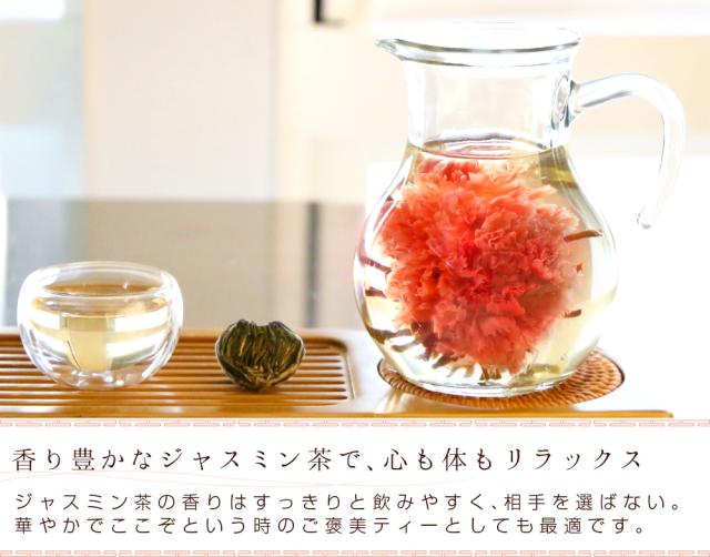 | 商品説明 | 1.それは芸術的な花咲くお茶。コロンとした茶葉にお湯を注ぐと徐々に開いてゆく芸術的な花たち。まるで魔法のような、おとぎ話のような、不思議な時間を作り出す。 2.ジャスミン茶ベースの工芸茶。ジャスミンの香りがあなたのリラックスタイムを華やかに彩ってくれます。たまには自分にもご褒美タイムを。 3.工芸茶1粒に対し約400mlの熱湯をかけ、2〜3煎飲んでいただけます。 |