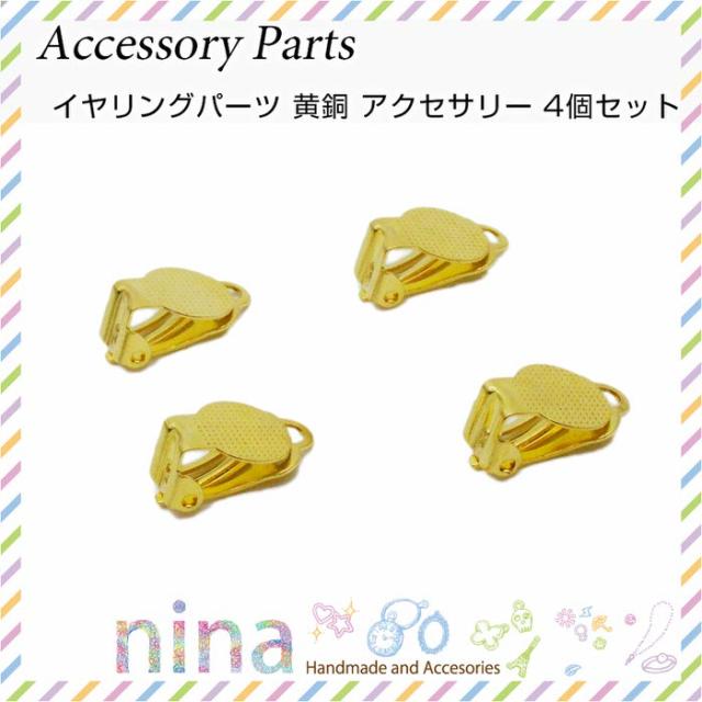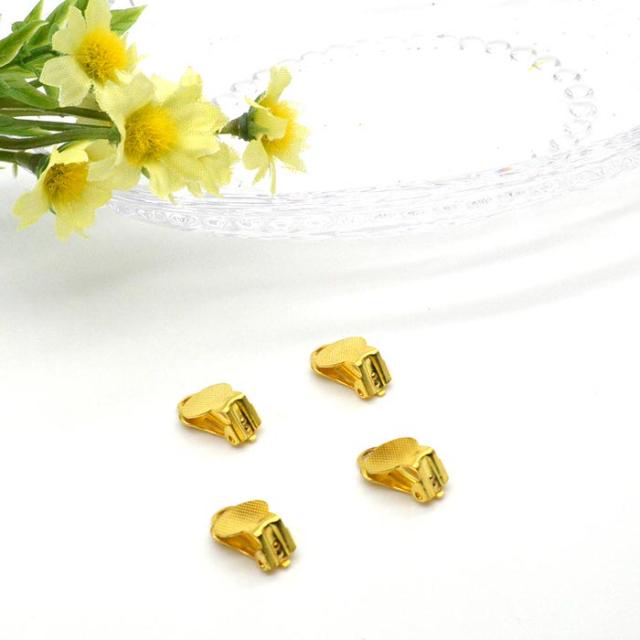 イヤリングパーツ 黄銅 アクセサリー 4個セット | 自分だけのイヤリングを♪ / 黄金 イヤリング アクセサリー ゴールド 材料 UVレジン 台座付き レジン 手作り 金具 レジン液 金属パーツ ハンドメイド 手芸 イヤリング金具
