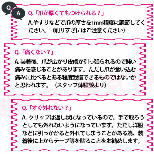 ●どんなサイズの爪にもピッタリ!ワイヤーは爪に合わせてカット、クリップの位置も調節できます!