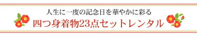| 四つ身着物・作り帯・長襦袢・半衿・重ね衿・帯揚げ・帯締め・志古貴・草履・バッグ・髪飾り 箱迫・扇子・びら簪・肌着・裾除け・伊達締め2本・腰紐2本・コーリンベルト2本・足袋 | |||