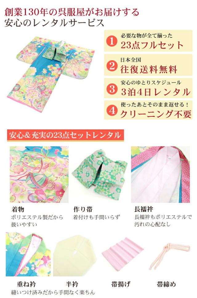 七五三 着物セット レンタル 7歳 フルセット 四つ身着物23点セットレンタル 乙葉