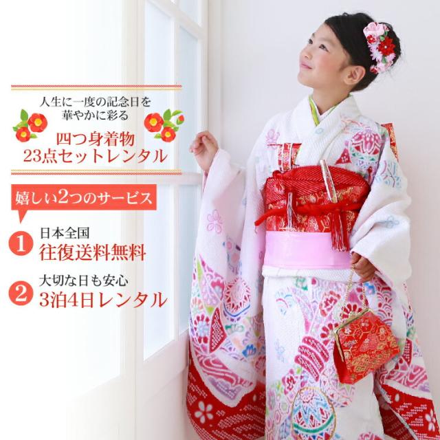 【七五三 着物 7歳 レンタルフルセット】四つ身絞り柄着物23点セットレンタル