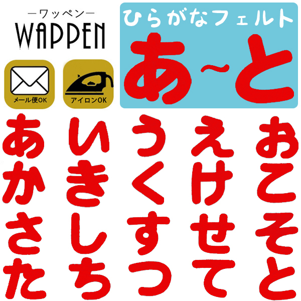 ひらがな ワッペン 手芸【あ〜と】フェルトワッペン アイロン接着 紺色 赤色 ネーム お名前ワッペン 名前シール なまえ 母の日 プレゼント ギフト