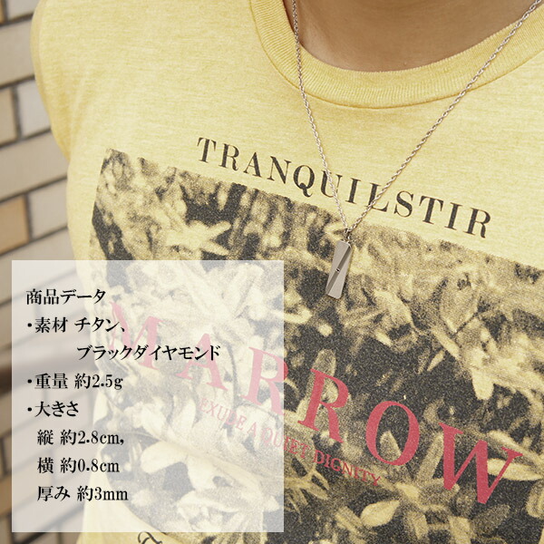 四隅を切り落としたプレートにブラックダイヤモンドを留めたチタンネックレス。