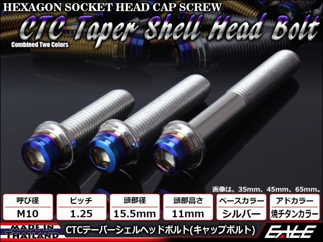 M10×30mm ステンレス テーパー シェル キャップボルト フレームやエンジン周りに シルバー/焼チタンカラー TB0888