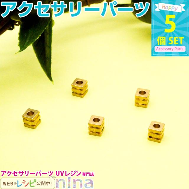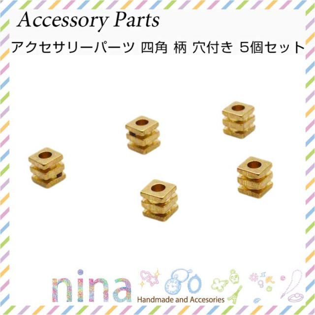 アクセサリーパーツ 四角 柄 穴付き 5個セット ビーズ 金 手作り ビーズ クラフト パーツ アクセサリーパーツ ゴールド ハンドメイド 四角 穴つき 手芸 材料 デコ
