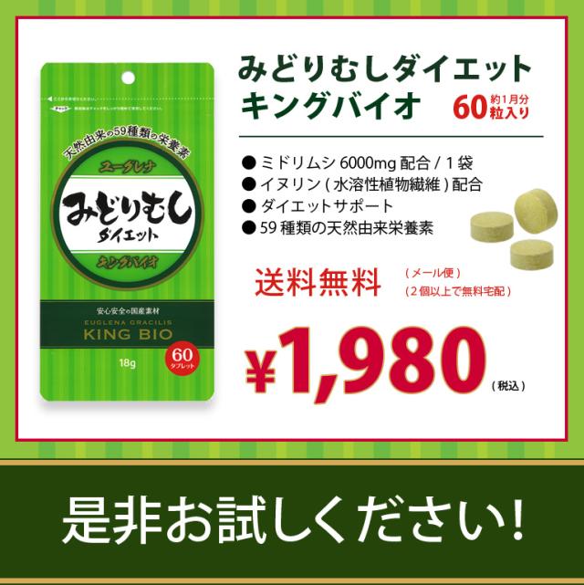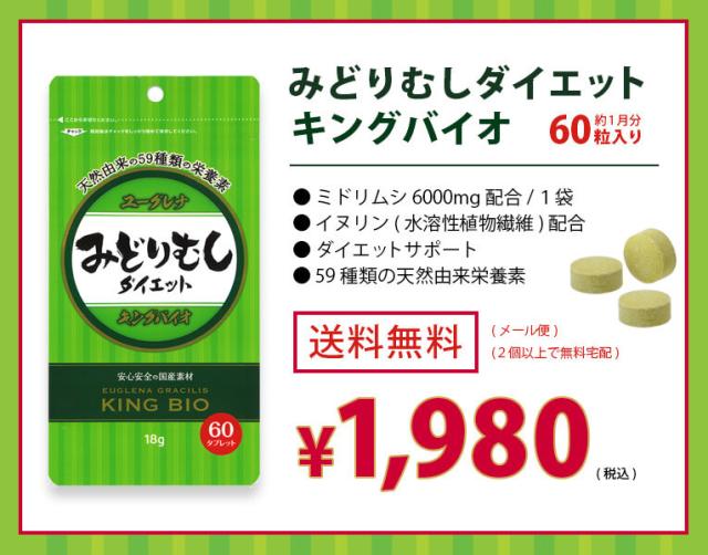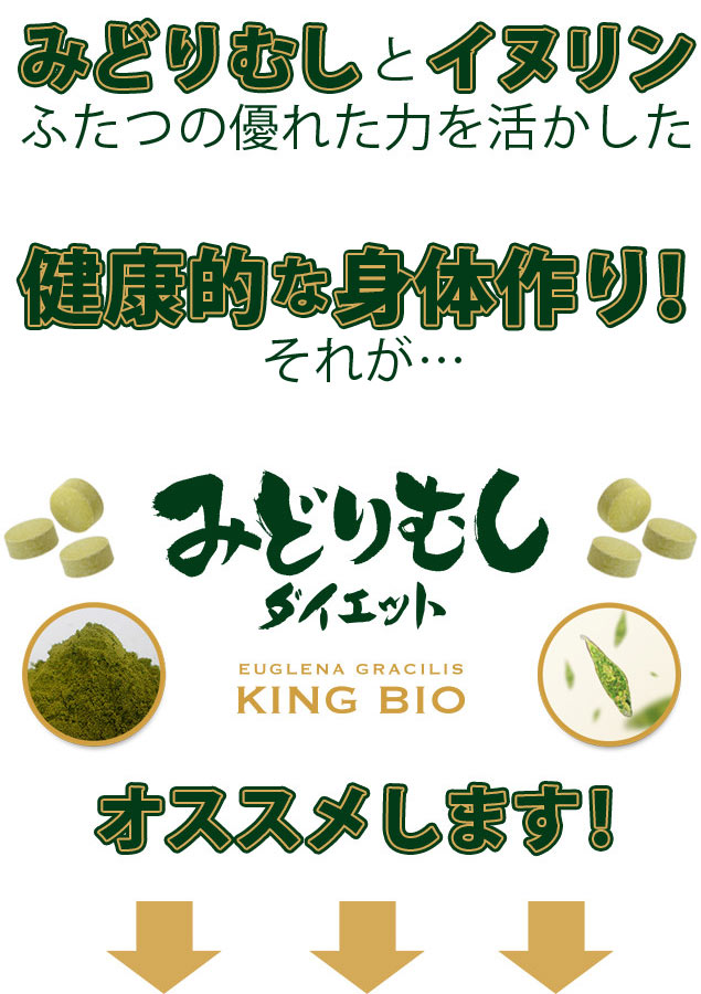 [メーカー公式] みどりむしダイエット キングバイオ (60粒入) 石垣島 ユーグレナ ミドリムシ パラミロン サプリメント キクイモ イヌリン 食物繊維 kingbio 送料無料 正規 【ROTTS/ロッツ】