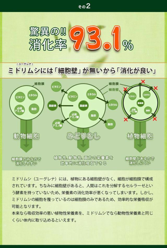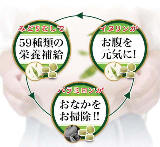 みどりむし(ユーグレナ)と、イヌリン(食物繊維)のふたつの優れた力を生かしたサプリメントです。