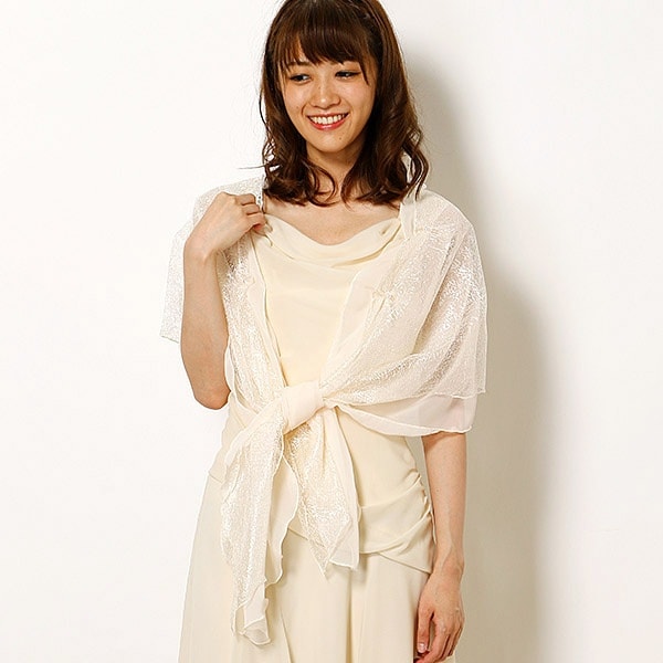 結婚式、二次会、謝恩会などに着るパーティードレスにピッタリなショールです。
