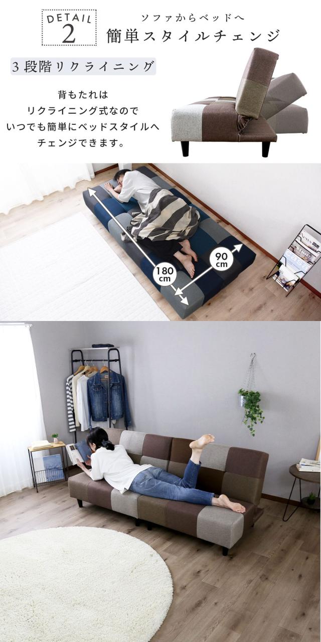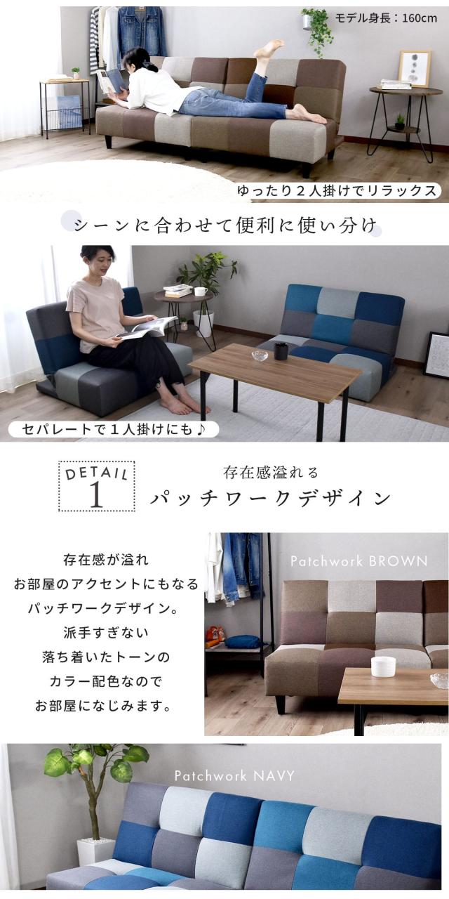 ソファーベッド 2人掛け ソファ パッチワークソファー カラフル リクライニング パッチワーク ミリエラ インテリア家具 おすすめ おしゃれ 北欧 big_ki プレゼント tm