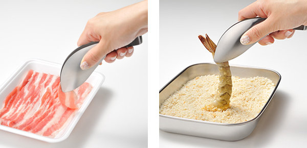 薄切り肉をはがす時、揚げ物の衣を付ける時など器用な先端形状で指の延長のような使い心地です。手が汚れないから手を洗う回数が減って調理がはかどります。