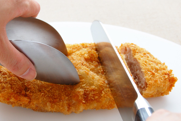 熱い揚げ物やあつあつのお肉料理を切る時にも使えます。また、オーブンからパンなどを取り出す時にも便利です。