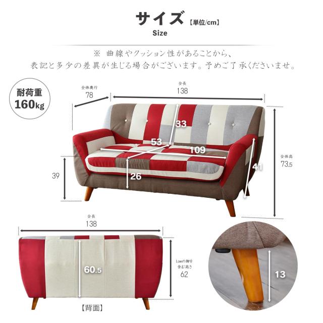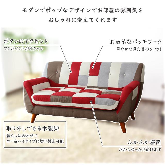 ソファー パッチワークソファー 2人掛け パッチワーク カラフル おしゃれ 肘付き ひとり暮らし ルセット インテリア家具 おすすめ おしゃれ 北欧 big_ki プレゼント tm