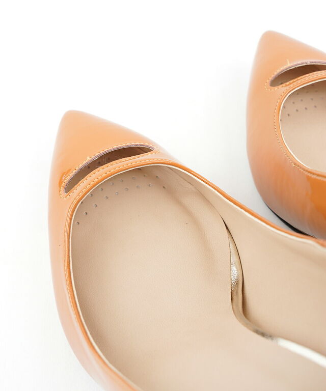 ポインテッドトゥに甲のカッティングデザインが、シンプルながらも小技を効かせています。