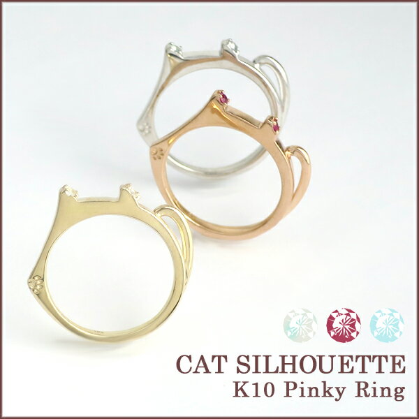 選べる3カラー K10 ゴールド キャットシルエット ピンキーリング(3号・5号) 指輪