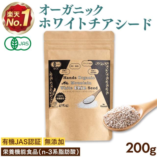 チアシード 有機JAS認証 ホワイトチアシード 200g オーガニック 栄養機能食品(n-3系脂肪酸)オメガ3