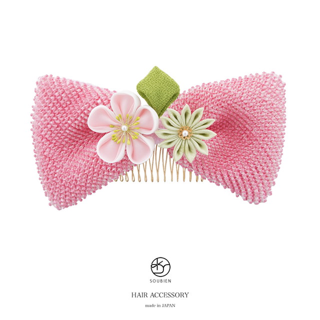 髪飾り リボン 桃色 ピンク 梅 剣菊 花 りぼん 絞り つまみ細工 コーム 髪留め 成人式向け 卒業式向け 振袖向け 袴向け ヘアアクセサリー 日本製 和装