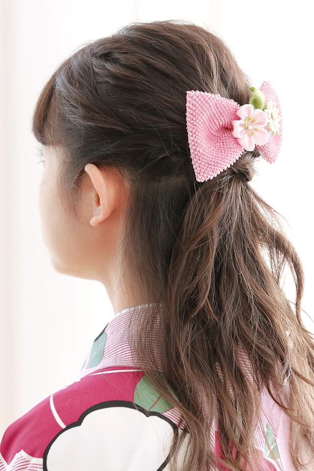 着物のヘアスタイルを彩る、つまみ細工の髪飾りです。