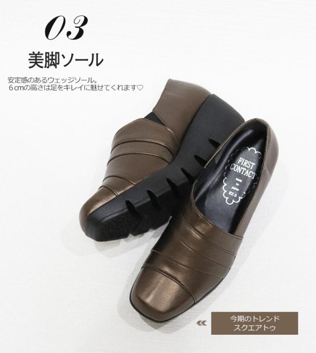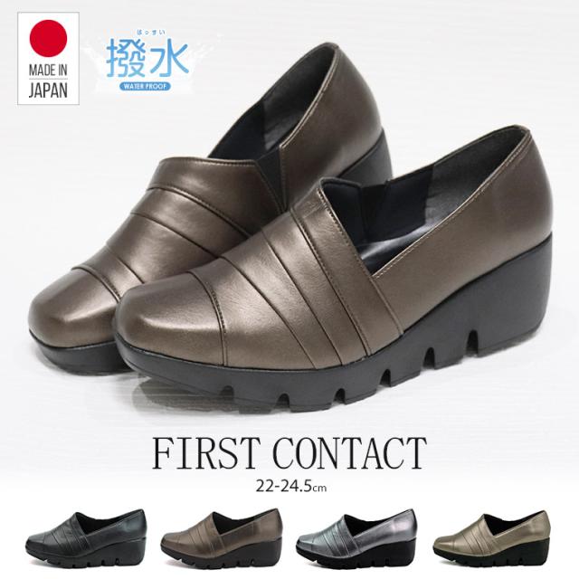 パンプス 痛くない 撥水 日本製 ウェッジソール FIRST CONTACT ファーストコンタクト 靴 レディース 歩きやすい 黒 ローヒール コンフォートシューズ 小さいサイズ 大きいサイズ ヒール 6cm 39100
