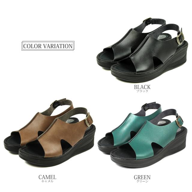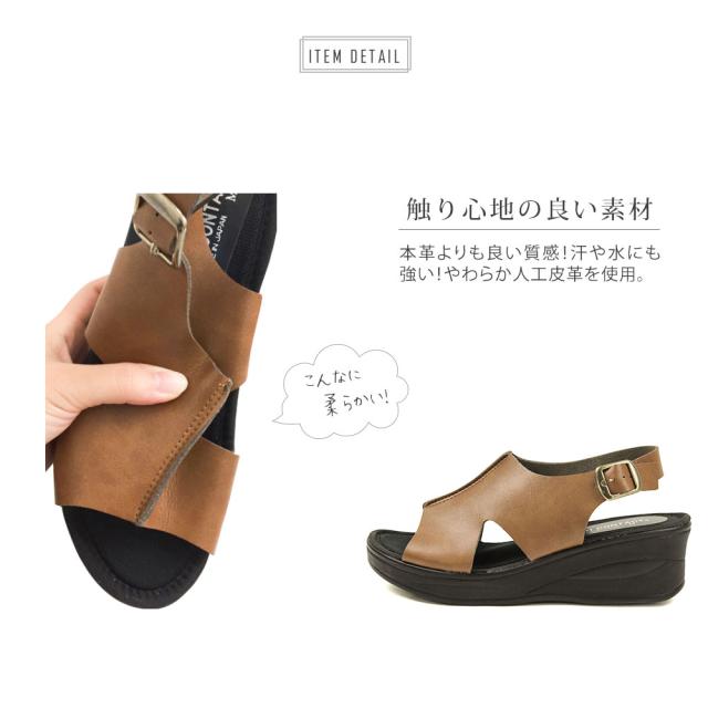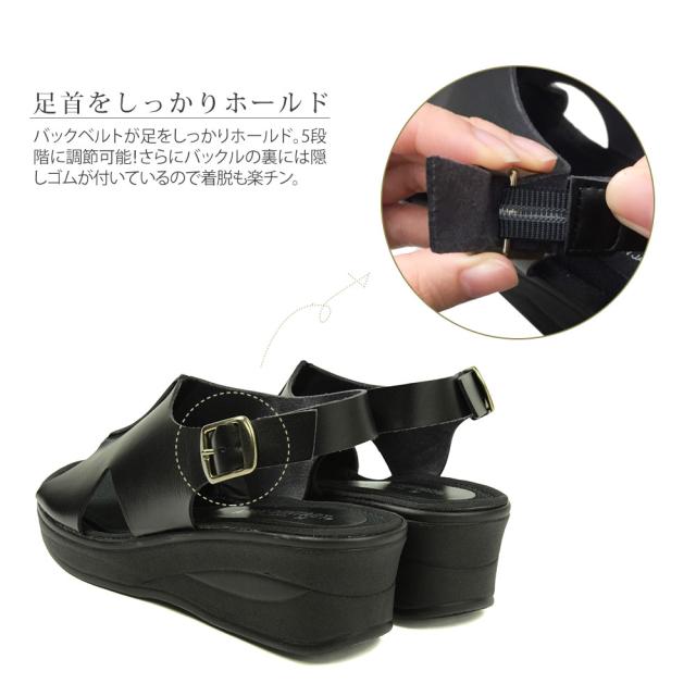 サンダル レディース ぺたんこ 歩きやすい サンダル レディース 厚底 クッション 厚底サンダル 軽量 ウェッジソール サンダル 厚底 日本製 ストラップ 歩きやすい 美脚 フットベッド 軽い 黒 ブラック グリーン キャメル 93400 ARCH CONTACT アーチコンタクト 送料無料